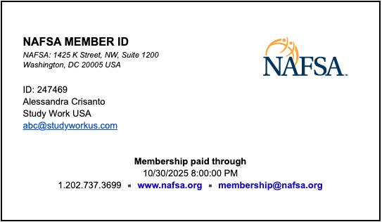 Temos o orgulho de anunciar que somos filiados à NAFSA: Association of International Educators, a maior e mais respeitada associação mundial voltada ao desenvolvimento da educação internacional e intercâmbios culturais.